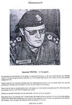 "Operação Protea" era a operação militar da SADF que destruiu grande número de bases da SWAPO dentro de Angola, que ocorreu de 23 de Agosto a 4 de Setembro de 1981.