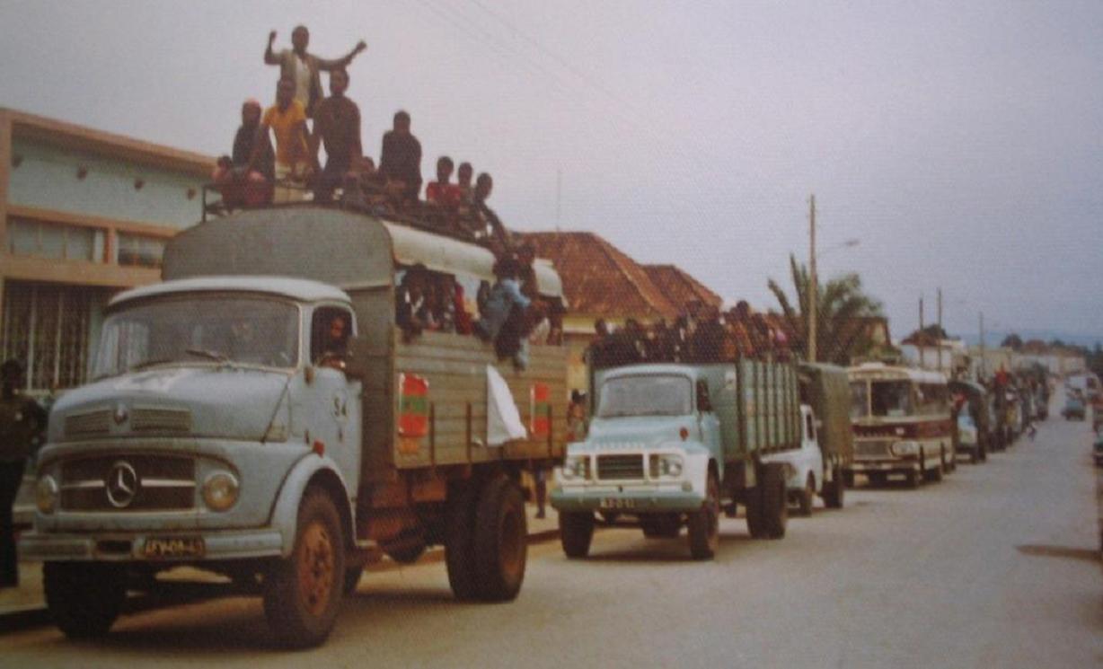 Portugueses da Lunda em concentração rumo a Luanda e a Nova Lisboa por estrada,