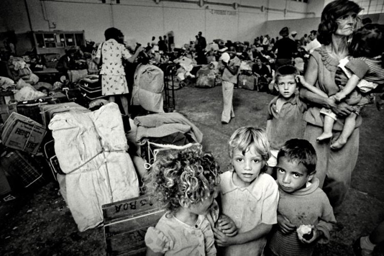1975, Namibia: portugueses no campo de refugiados em Grootfontein.