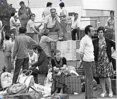 chegada e concentração dos portugueses refugiados.