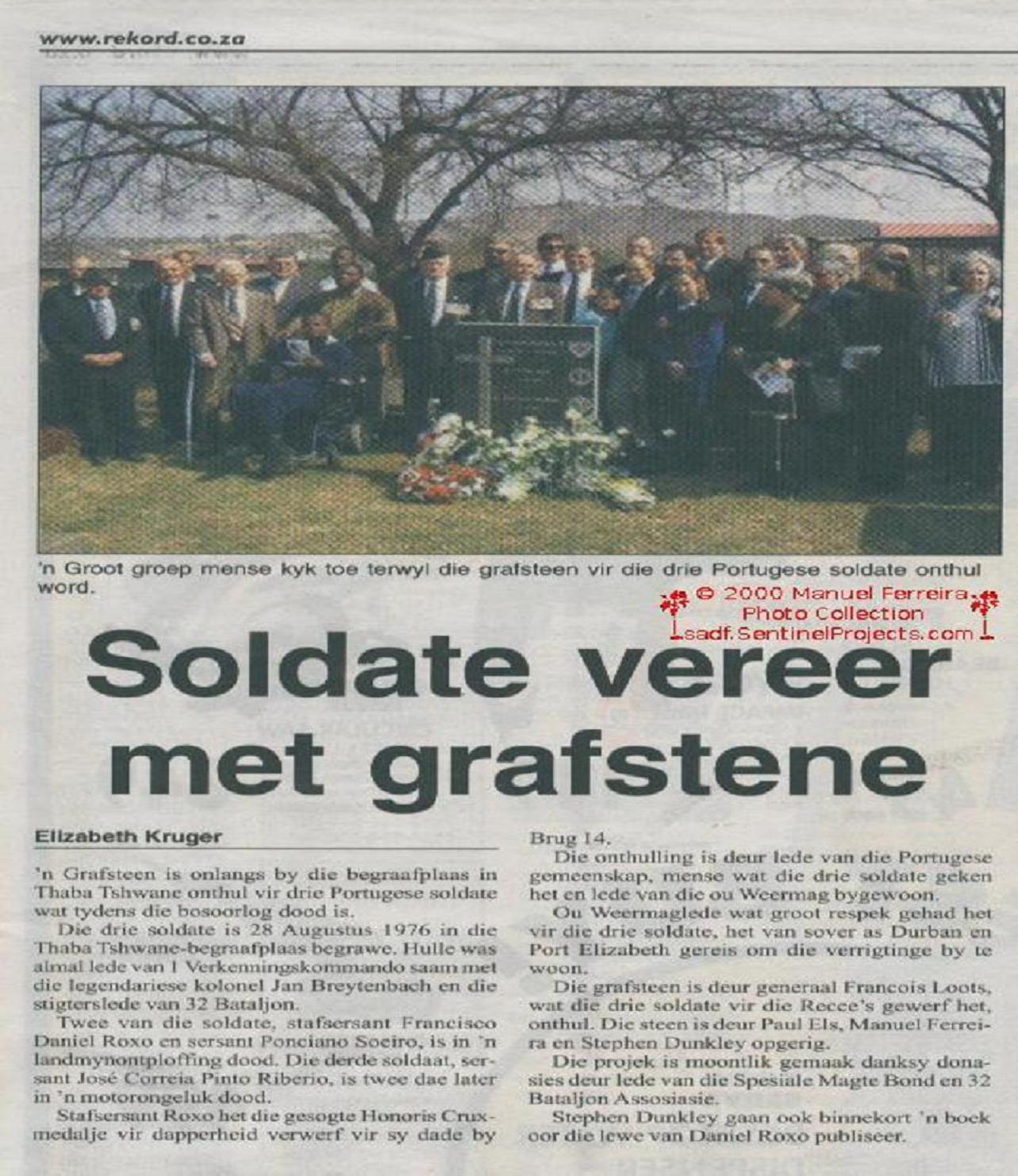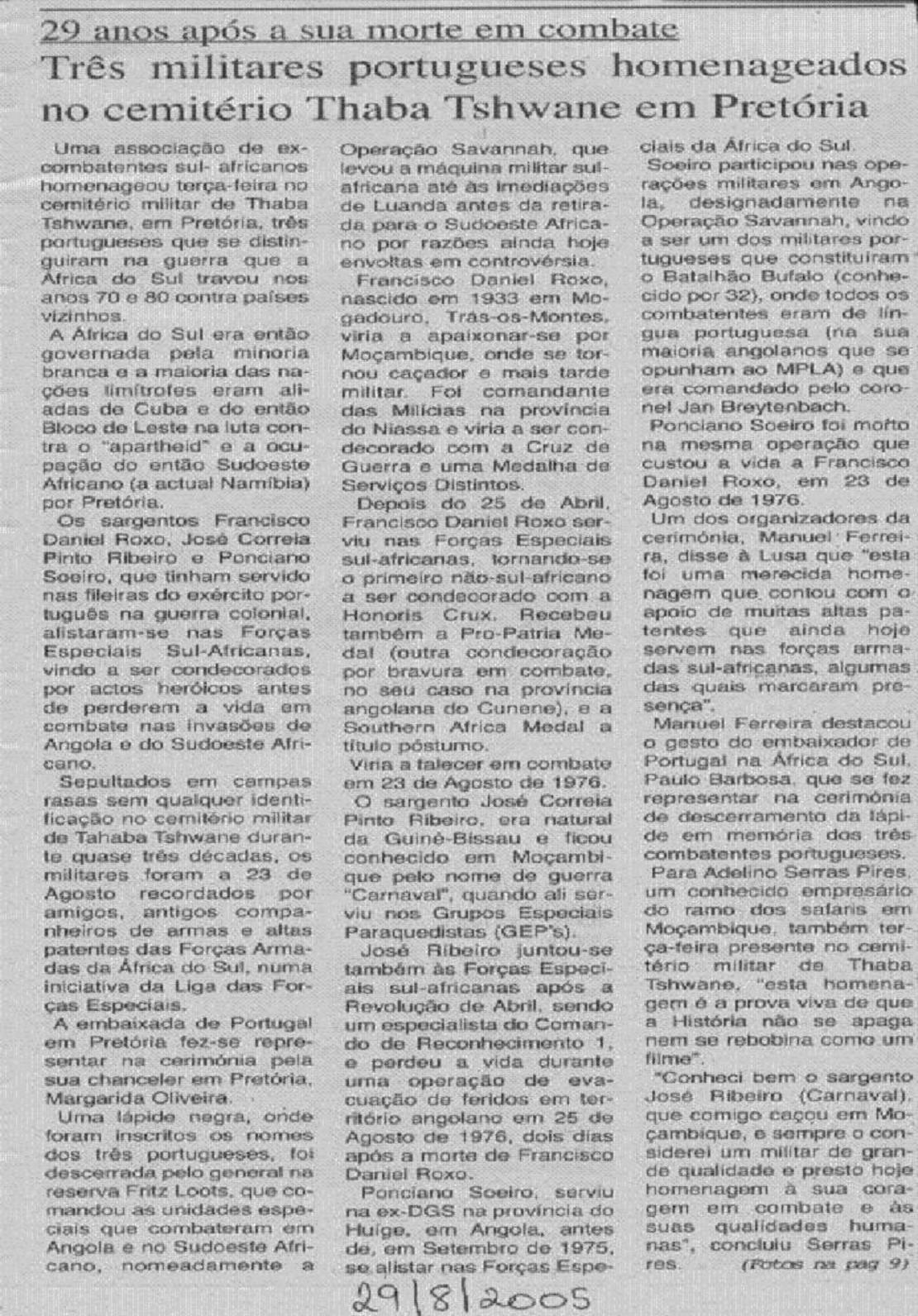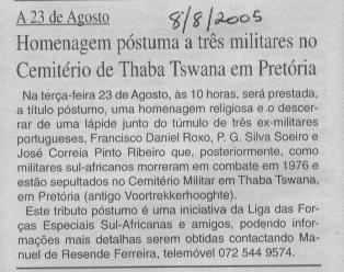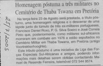 HOMENAGEM PRESTADA A MILITARES PORTUGUESES NA ÁFRICA DO SUL.