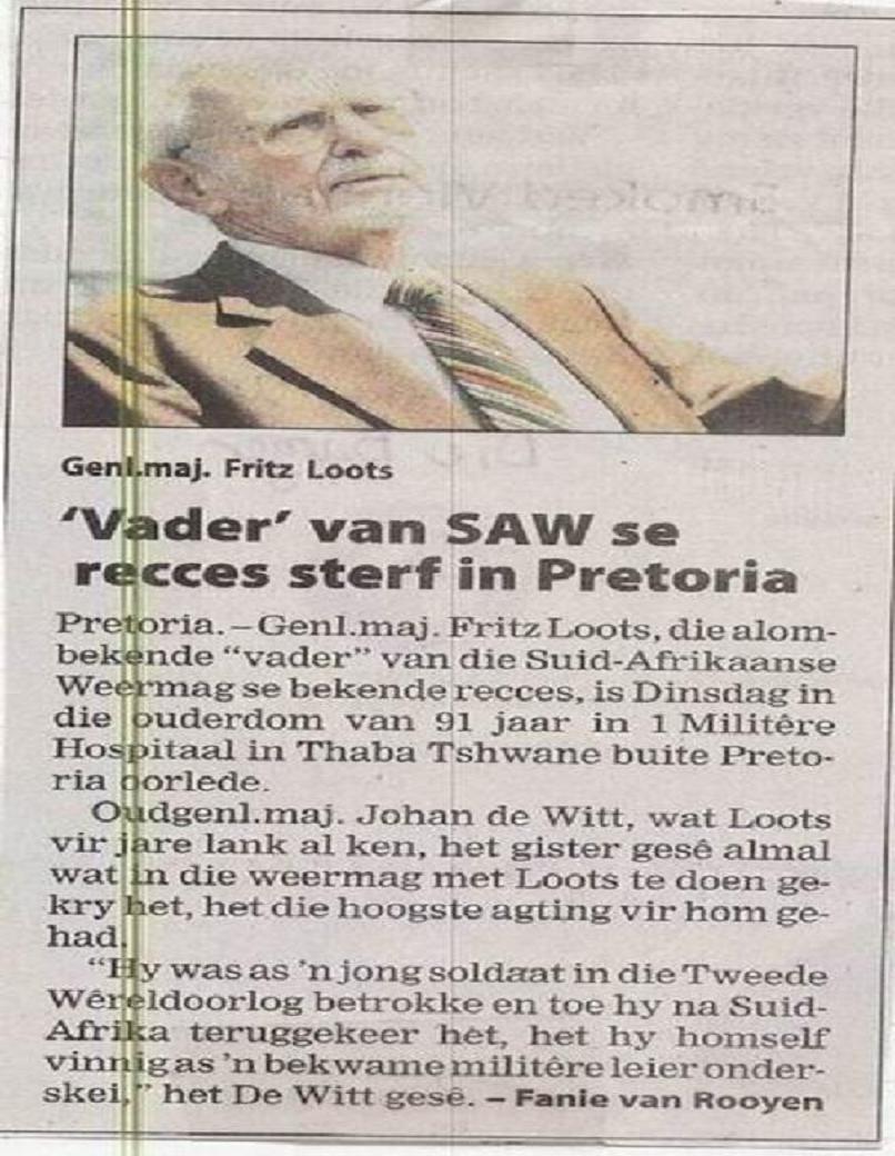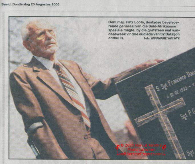 Na cerimónia estiveram presentes militares, imprensa portuguesa, diplomatas e outros, sendo a patente mais alta o General Fritz Loots, ex-comandante em Chefe das Forças especiais e, mais tarde, o Chefe da Inteligência Militar sul-africana.