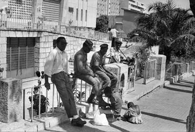Nova-Lisboa: russos e cubanos no terraço de um Hotel da cidade de Nova-Lisboa.